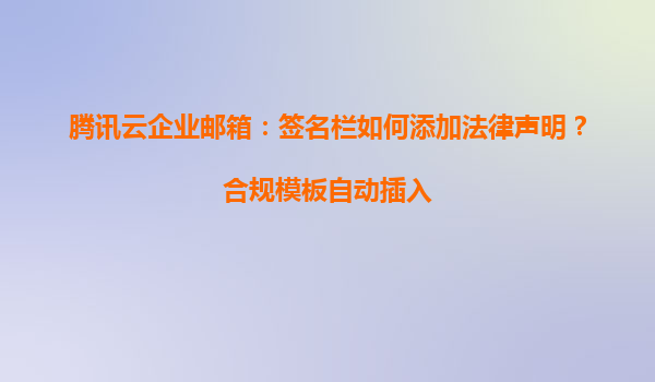 2025-05-16騰訊云企業郵箱:法律聲明簽名欄配置與合規化解決方案 一、為何法律聲明簽名欄對企業至關重要? 在數字化商務場景中,企業郵件不僅是信息傳遞的工具,更是品牌形象與合規運營的重要載體。法律聲明...
