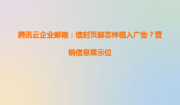 2025-05-16騰訊云企業郵箱:信封頁腳廣告植入與營銷信息展示的全面解析 一、企業郵箱頁腳廣告的價值與意義 在數字化營銷時代,企業郵箱不僅是內部溝通工具,更是品牌傳播的重要渠道。通過騰訊云企業郵箱的「信封頁腳...
