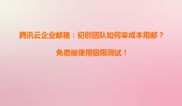 2025-05-14騰訊云企業郵箱免費版:初創團隊零成本高效用郵指南 一、為什么初創團隊需要專屬企業郵箱? 在創業初期,專業形象與高效協同是企業發展的關鍵。騰訊云企業郵箱免費版支持5-50人團隊使用,提供yourname@comp...