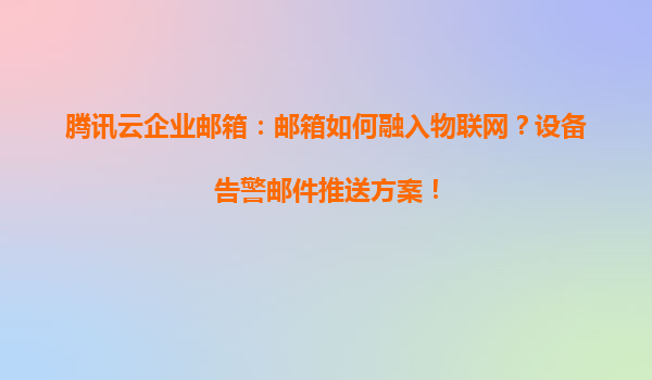 2025-05-11騰訊云企業郵箱:郵箱如何融入物聯網?設備告警郵件推送方案 一、物聯網時代的設備告警需求與挑戰 隨著物聯網(IoT)技術的快速發展,數以億計的智能設備已滲透到工業制造、智慧城市、智能家居等領域。然而...