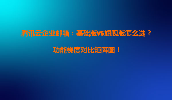 2025-05-11騰訊云企業郵箱:基礎版vs旗艦版功能對比與選型指南 一、騰訊云企業郵箱的核心優勢 1.1安全可信的企業級防護 采用金融級SSL加密傳輸,配備智能反垃圾引擎,病毒郵件攔截率>99.9%,支持DKIM/SPF/DMA...