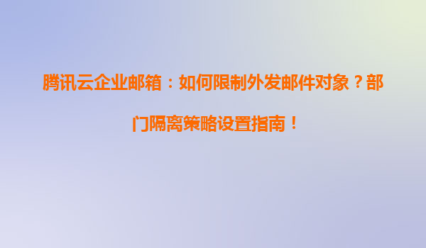 2025-05-11騰訊云企業郵箱:如何限制外發郵件對象?部門隔離策略設置指南 一、企業郵箱管理的重要性 在數字化辦公場景中,企業郵箱不僅是溝通工具,更是信息安全的“第一道防線”。尤其對于中大型企業而言,防止...