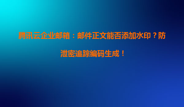 2025-05-11騰訊云企業郵箱:郵件正文水印與防泄密追蹤編碼功能解析 一、郵件安全防護的核心功能 騰訊云企業郵箱針對企業級用戶的高安全性需求,推出郵件正文水印嵌入與防泄密追蹤編碼生成兩大核心功能,從內容保...