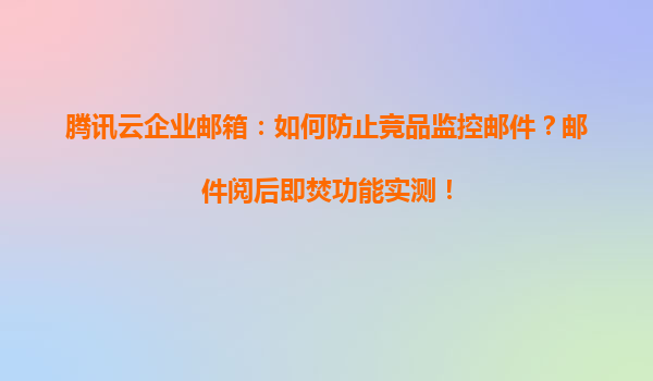 2025-05-11騰訊云企業郵箱:如何防止競品監控郵件?郵件閱后即焚功能實測 一、企業信息安全面臨的新挑戰 在數字化競爭白熱化的今天,企業郵件已成為商業機密泄露的高危渠道。第三方監控軟件、員工誤操作、郵件內容殘...
