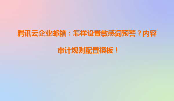 2025-05-10騰訊云企業郵箱:敏感詞預警與內容審計規則配置指南 在數字化辦公場景中,企業郵箱不僅是溝通工具,更是信息安全的重要防線。騰訊云企業郵箱通過智能化敏感詞預警和靈活的內容審計規則,幫助企業實現郵件內容合...