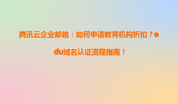 2025-05-09騰訊云企業郵箱教育機構折扣申請及edu域名認證流程指南 一、為何選擇騰訊云企業郵箱? 騰訊云企業郵箱憑借其高穩定性、專業反垃圾郵件技術和與微信無縫對接的便捷性,成為教育機構數字化管理的首...