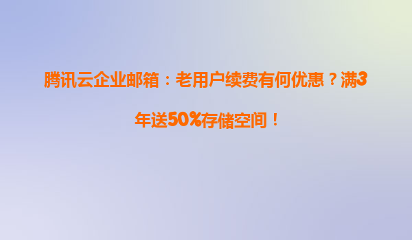 2025-05-09騰訊云企業郵箱:老用戶續費享多重福利,滿3年送50%存儲空間! 隨著企業數字化轉型加速,高效穩定的郵箱服務成為企業通信的核心需求。騰訊云企業郵箱憑借其卓越性能與優質服務,持續為企業用戶提...