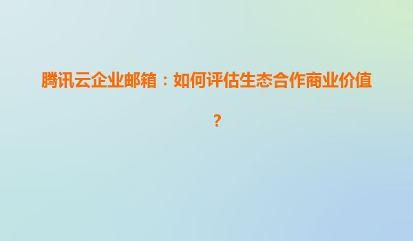 2025-05-01騰訊云企業郵箱:如何評估生態合作商業價值? 一、生態合作商業價值的核心邏輯 在數字化時代,企業郵箱已從基礎通信工具升級為連接企業內外部資源的樞紐。騰訊云企業郵箱通過構建開放生態,將郵件...