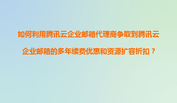 2025-11-04如何利用騰訊云企業(yè)郵箱代理商爭取多年續(xù)費優(yōu)惠和資源擴容折扣? 一、騰訊云企業(yè)郵箱的核心優(yōu)勢 騰訊云企業(yè)郵箱依托騰訊集團20余年郵件系統(tǒng)運營經(jīng)驗,提供高安全、高可用的企業(yè)級...
