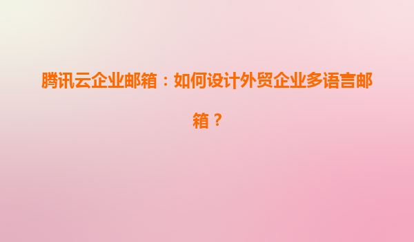 2025-04-30騰訊云企業郵箱:外貿企業多語言郵箱設計全解析 一、外貿企業多語言郵箱的核心需求 隨著全球化進程加速,外貿企業對多語言郵箱的需求呈現以下特征:需支持多語種界面切換、國際化域名兼容性、全球郵件收發...