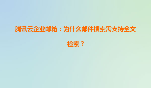 2025-04-26騰訊云企業郵箱:為什么郵件搜索需支持全文檢索? 一、全文檢索對企業郵件管理的核心價值 在數字化辦公場景中,電子郵件作為企業溝通與信息沉淀的核心載體,每...