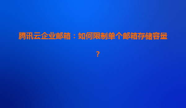2025-04-26騰訊云企業郵箱:如何限制單個郵箱存儲容量? 一、企業郵箱存儲管理的重要性 在企業日常運營中,郵箱不僅是溝通工具,更是重要數據和文件的傳輸載體。隨著使用時間增長,單個郵箱的存儲...
