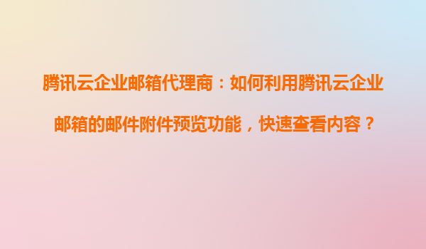 2025-11-03騰訊云企業(yè)郵箱代理商:如何利用騰訊云企業(yè)郵箱的郵件附件預(yù)覽功能快速查看內(nèi)容? 一、騰訊云企業(yè)郵箱的核心優(yōu)勢 騰訊云企業(yè)郵箱作為國內(nèi)領(lǐng)先的企業(yè)級郵件服務(wù),憑借騰訊云強大的技術(shù)支撐...