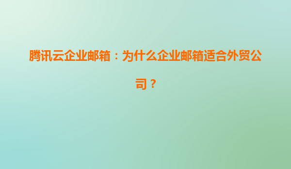 2025-04-22騰訊云企業郵箱:為什么企業郵箱適合外貿公司? 一、外貿公司的核心需求與郵箱的重要性 外貿企業的業務場景高度依賴國際化的溝通工具,而企業郵箱作為商務往來的核心媒介,需滿足以下需求: ...