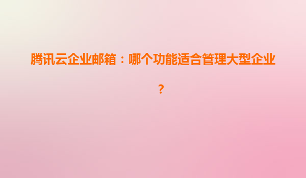 2025-04-21騰訊云企業郵箱:大型企業高效管理的核心功能解析 一、為什么大型企業需要專業級郵箱系統? 在數字化辦公場景下,大型企業面臨著組織架構復雜、信息安全風險高、跨部門協作頻繁等挑戰。傳統郵箱系統在...