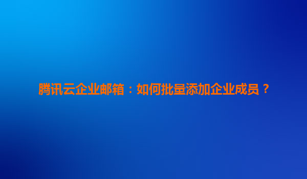 2025-04-21騰訊云企業郵箱:高效管理企業成員的批量添加指南 一、騰訊云企業郵箱的核心優勢 騰訊云企業郵箱憑借其強大的技術實力與豐富的企業服務經驗,成為眾多企業數字化辦公的首選工具。其核心優勢包括: ...