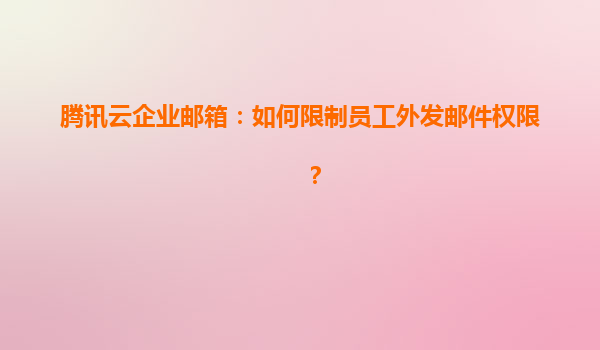 2025-04-21騰訊云企業郵箱:如何限制員工外發郵件權限? 一、企業郵件外發權限管控的重要性 在數字化辦公場景中,企業郵箱是核心溝通工具之一。然而,員工隨意外發敏感郵件可能導致數據泄露、商業機密外流等風險...