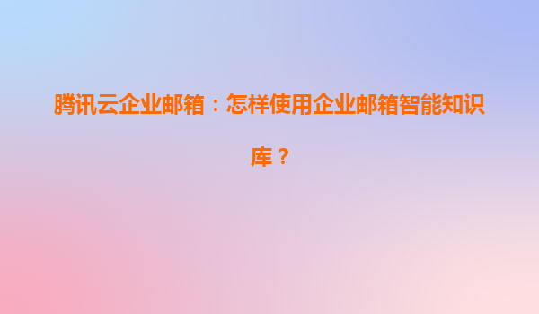 騰訊云企業郵箱智能知識庫使用指南 騰訊云企業郵箱的智能知識庫功能,通過AI技術為企業提供高效的信息管理解決方案,顯著提升團隊協作與客戶服務效率。以下從功能使用到核心優勢進行全面解析。 ...