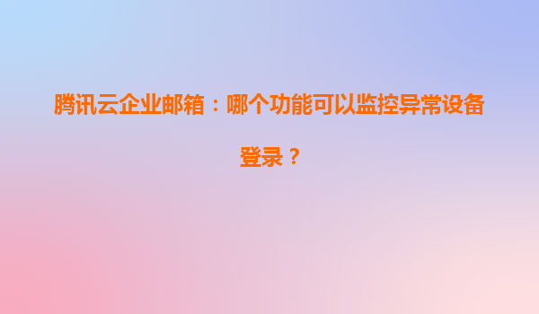 2025-04-19騰訊云企業(yè)郵箱:如何有效監(jiān)控異常設(shè)備登錄? 一、企業(yè)郵箱安全的核心挑戰(zhàn) 在數(shù)字化辦公場景中,企業(yè)郵箱承載著大量敏感信息,包括客戶數(shù)據(jù)、合同文件等。然而,設(shè)備多端登錄、員工賬號(hào)泄露、惡意...