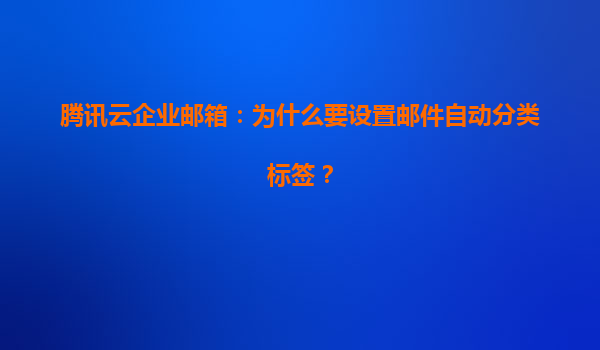 2025-04-18騰訊云企業(yè)郵箱:智能化郵件管理,助力企業(yè)高效溝通 一、郵件自動(dòng)分類標(biāo)簽的核心價(jià)值 在數(shù)字化辦公時(shí)代,企業(yè)每天需處理大量郵件,從客戶溝通到內(nèi)部協(xié)作,信息繁雜且優(yōu)先級(jí)各異。騰訊云企業(yè)郵箱的...