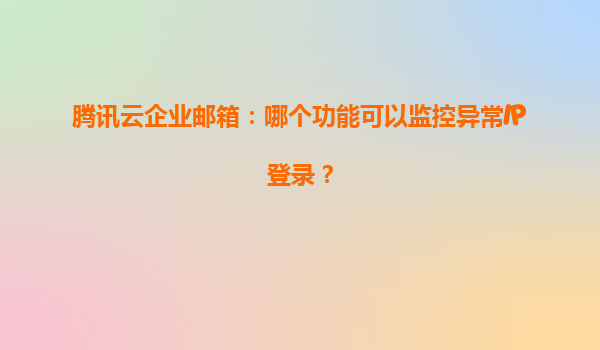 2025-04-17騰訊云企業(yè)郵箱如何通過異常IP登錄監(jiān)控保障企業(yè)安全 企業(yè)郵箱安全的重要性 在數(shù)字化辦公時代,企業(yè)郵箱不僅是溝通工具,更是承載商業(yè)機密、客戶信息的重要載體。騰訊云企業(yè)郵箱憑借其強大的安...