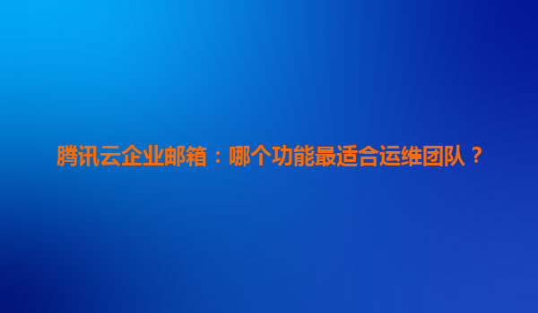 2025-04-16騰訊云企業(yè)郵箱:哪個(gè)功能最適合運(yùn)維團(tuán)隊(duì)? 一、運(yùn)維團(tuán)隊(duì)的核心需求與騰訊云企業(yè)郵箱的匹配性 運(yùn)維團(tuán)隊(duì)作為企業(yè)IT基礎(chǔ)設(shè)施的核心支撐部門,對(duì)郵箱系統(tǒng)的需求不僅限于基礎(chǔ)通信功能,更需要高效管理、安...