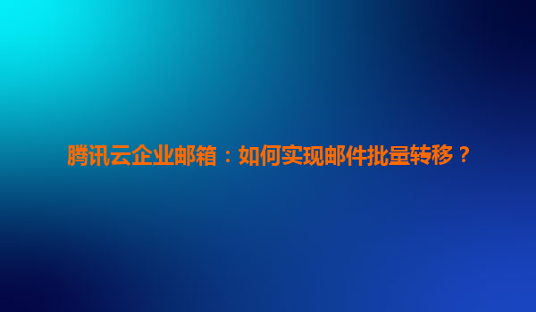 2025-04-16騰訊云企業(yè)郵箱的郵件批量轉(zhuǎn)移功能介紹 騰訊云企業(yè)郵箱作為高效的企業(yè)級(jí)通信解決方案,憑借其強(qiáng)大的功能和穩(wěn)定的服務(wù),成為眾多企業(yè)的首選。其中,郵件批量轉(zhuǎn)移功能在日常辦公中尤為重要,尤其適用于企業(yè)部...