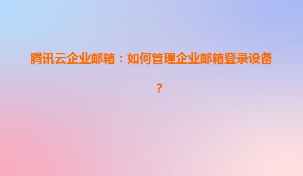 2025-04-11騰訊云企業(yè)郵箱:高效管理登錄設(shè)備,護(hù)航企業(yè)信息安全 一、企業(yè)郵箱設(shè)備管理的必要性 在移動(dòng)辦公普及的今天,員工可能通過(guò)PC、手機(jī)、平板等多終端登錄企業(yè)郵箱。騰訊云企業(yè)郵箱提供完善的設(shè)備管理功能,幫...