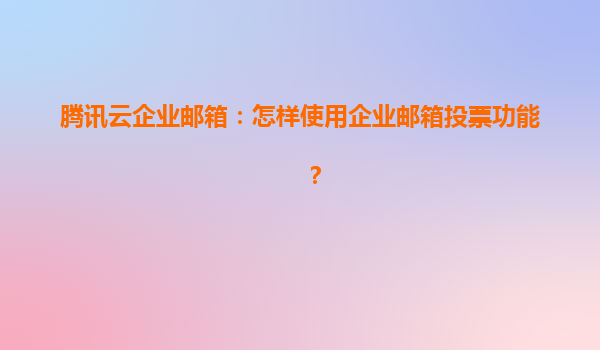 2025-04-06騰訊云企業(yè)郵箱投票功能:高效協(xié)作的得力助手 在數(shù)字化辦公場景中,企業(yè)郵箱不僅是溝通工具,更是團隊協(xié)作的核心平臺。騰訊云企業(yè)郵箱憑借其創(chuàng)新的投票功能,為用戶提供了高效的決策支持工具。本文將深入解析該...