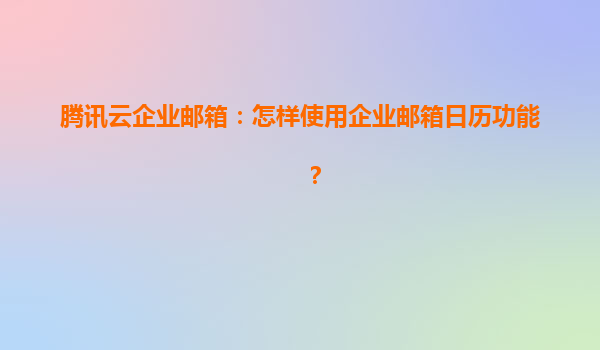 2025-04-05騰訊云企業(yè)郵箱日歷功能:高效協(xié)作與智能管理 一、企業(yè)郵箱日歷功能的核心價值 在現(xiàn)代企業(yè)辦公場景中,時間管理與團(tuán)隊協(xié)作效率直接影響業(yè)務(wù)進(jìn)展。騰訊云企業(yè)郵箱的日歷功能,不僅支持個人日程規(guī)劃,更...
