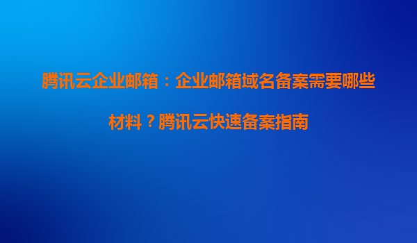 2025-04-02騰訊云企業(yè)郵箱:企業(yè)郵箱域名備案所需材料及快速備案指南 一、為什么需要企業(yè)郵箱域名備案? 根據(jù)中國相關(guān)法律法規(guī),使用中國大陸服務(wù)器提供互聯(lián)網(wǎng)服務(wù)的企業(yè),需完成域名備案。企業(yè)郵箱作為企業(yè)對(duì)外...