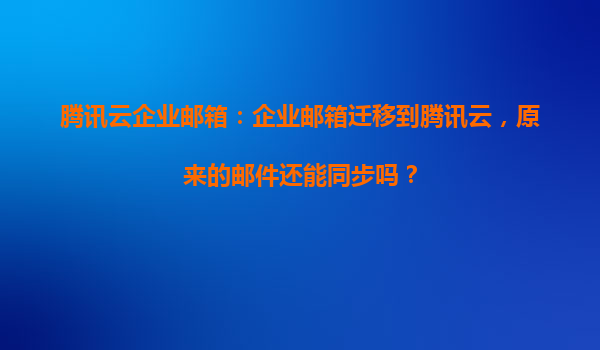 4008-020-360 騰訊云企業(yè)郵箱:企業(yè)郵箱遷移到騰訊云,原來的郵件還能同步嗎? 一、企業(yè)郵箱遷移的核心問題:郵件數(shù)據(jù)能否同步? 許多企業(yè)在考慮遷移郵箱服務(wù)時(shí),最關(guān)心的問題是歷史郵件數(shù)據(jù)能否完整保留和同步。騰...