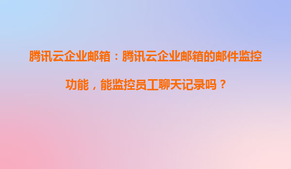 2025-04-02騰訊云企業(yè)郵箱的郵件監(jiān)控功能解析 騰訊云企業(yè)郵箱作為一款高效的企業(yè)級(jí)通信工具,其郵件監(jiān)控功能備受企業(yè)管理者關(guān)注。關(guān)于“能否監(jiān)控員工聊天記錄”這一問題,需要明確的是:騰訊云企業(yè)郵箱的郵件監(jiān)控功能主要...