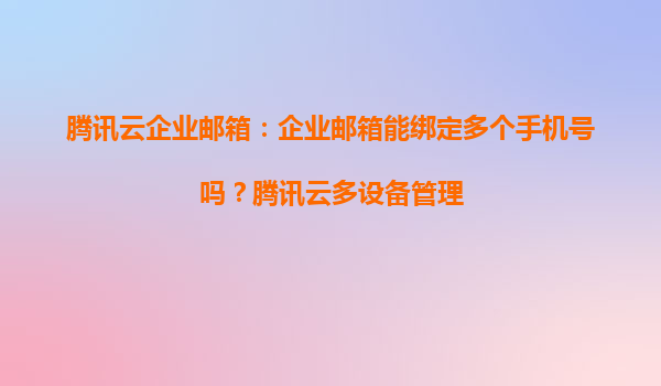 2025-04-02騰訊云企業(yè)郵箱:多手機(jī)號(hào)綁定與多設(shè)備管理解析 一、企業(yè)郵箱能否綁定多個(gè)手機(jī)號(hào)? 騰訊云企業(yè)郵箱目前支持為主賬號(hào)綁定單個(gè)手機(jī)號(hào)作為核心安全驗(yàn)證方式,但可通過以下方案實(shí)現(xiàn)多設(shè)備管理需求: ...
