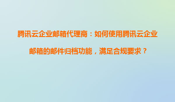 2025-11-01騰訊云企業(yè)郵箱代理商:如何使用騰訊云企業(yè)郵箱的郵件歸檔功能,滿(mǎn)足合規(guī)要求 隨著企業(yè)對(duì)數(shù)據(jù)管理和合規(guī)要求的日益嚴(yán)格,郵件歸檔功能成為企業(yè)郵箱解決方案中的重要組成部分。作為騰訊云企業(yè)郵箱代理商,我們深知企...