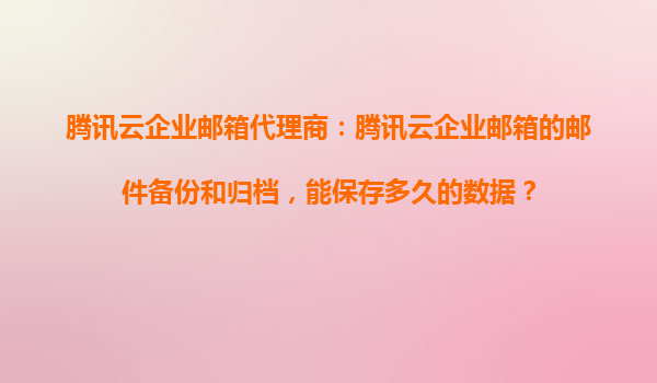 2025-10-28騰訊云企業(yè)郵箱代理商:騰訊云企業(yè)郵箱的郵件備份和歸檔功能詳解 一、騰訊云企業(yè)郵箱的郵件數(shù)據(jù)保存時(shí)效 作為企業(yè)級(jí)郵件服務(wù)的重要功能,騰訊云企業(yè)郵箱的郵件備份和歸檔能力是許多企業(yè)關(guān)注的重點(diǎn)。根據(jù)騰...