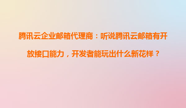 2025-10-28騰訊云企業(yè)郵箱開放接口:解鎖開發(fā)者無限可能 騰訊云企業(yè)郵箱的核心優(yōu)勢(shì) 作為國(guó)內(nèi)領(lǐng)先的云計(jì)算服務(wù)商,騰訊云企業(yè)郵箱不僅提供穩(wěn)定的郵件收發(fā)服務(wù),更通過強(qiáng)大的開放接口能力賦予開發(fā)者靈活擴(kuò)展的可能。其...