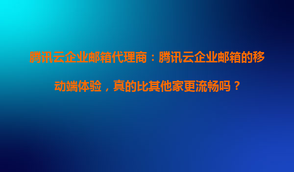 2025-10-28騰訊云企業(yè)郵箱代理商:騰訊云企業(yè)郵箱的移動(dòng)端體驗(yàn),真的比其他家更流暢嗎? 一、引言 隨著移動(dòng)辦公的普及,企業(yè)郵箱的移動(dòng)端體驗(yàn)成為用戶選擇服務(wù)商時(shí)的重要考量因素。騰訊云企業(yè)郵箱作為國(guó)內(nèi)領(lǐng)先的企業(yè)...