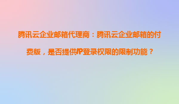 2025-10-24騰訊云企業(yè)郵箱代理商解析:付費(fèi)版IP登錄權(quán)限限制功能及優(yōu)勢(shì) 一、騰訊云企業(yè)郵箱付費(fèi)版的核心功能 騰訊云企業(yè)郵箱作為國(guó)內(nèi)領(lǐng)先的企業(yè)級(jí)郵箱服務(wù),其付費(fèi)版在基礎(chǔ)功能上提供了更完善的安全與管理能力。其中,I...
