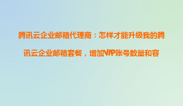 2025-10-23騰訊云企業(yè)郵箱代理商指南:如何升級套餐并擴容VIP賬號 一、騰訊云企業(yè)郵箱的核心優(yōu)勢 騰訊云企業(yè)郵箱作為國內(nèi)領(lǐng)先的企業(yè)級郵箱服務(wù),憑借以下優(yōu)勢成為眾多企業(yè)的首選: 企業(yè)級安全防護(hù)...