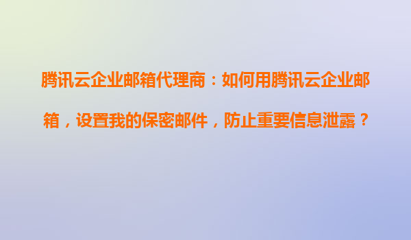 2025-10-23騰訊云企業(yè)郵箱代理商:保密郵件設(shè)置指南 為什么選擇騰訊云企業(yè)郵箱? 騰訊云企業(yè)郵箱作為國內(nèi)領(lǐng)先的企業(yè)級郵件服務(wù),依托騰訊強大的技術(shù)實力和安全性保障,為企業(yè)用戶提供高效、穩(wěn)定的郵件通訊解決方案。...