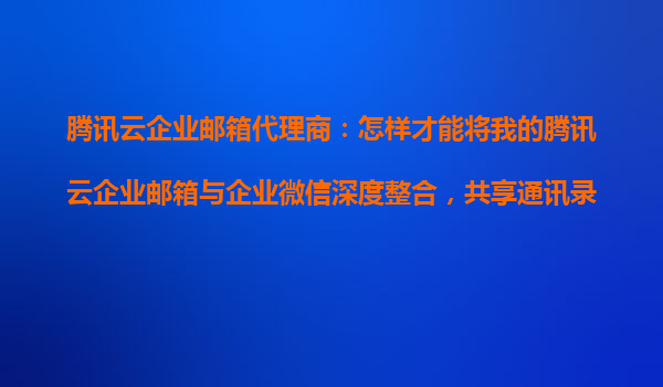 2025-10-22騰訊云企業(yè)郵箱代理商指南:如何深度整合企業(yè)郵箱與企業(yè)微信通訊錄 一、騰訊云企業(yè)郵箱與企業(yè)微信整合的核心價(jià)值 騰訊云企業(yè)郵箱作為國(guó)內(nèi)領(lǐng)先的商務(wù)通信解決方案,與企業(yè)微信的深度整合能夠?qū)崿F(xiàn):統(tǒng)一身份...