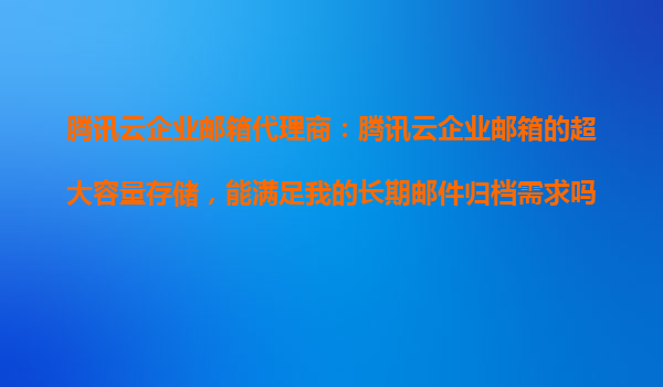 2025-10-22騰訊云企業(yè)郵箱代理商:騰訊云企業(yè)郵箱的超大容量存儲(chǔ),能滿(mǎn)足我的長(zhǎng)期郵件歸檔需求嗎? 一、企業(yè)郵件歸檔的重要性 在數(shù)字化辦公時(shí)代,電子郵件是企業(yè)溝通和業(yè)...