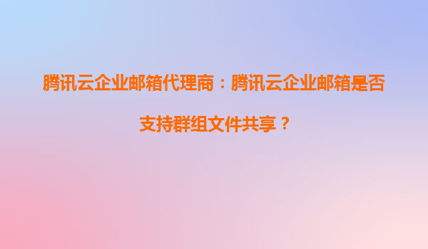 2025-10-21騰訊云企業(yè)郵箱代理商解析:騰訊云企業(yè)郵箱是否支持群組文件共享? 一、騰訊云企業(yè)郵箱的群組文件共享功能 騰訊云企業(yè)郵箱作為國內(nèi)領(lǐng)先的企業(yè)級郵箱服務(wù),不僅提供基礎(chǔ)的郵件收發(fā)功能,還支持高效的團...