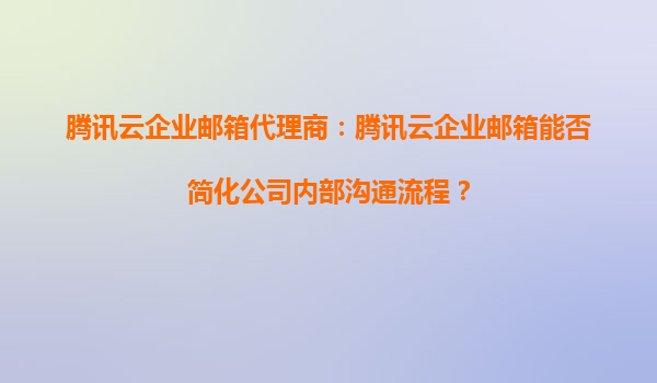 2025-10-20騰訊云企業(yè)郵箱代理商:騰訊云企業(yè)郵箱能否簡化公司內(nèi)部溝通流程? 引言 在當今數(shù)字化時代,企業(yè)內(nèi)部的溝通效率直接影響著業(yè)務的發(fā)展和團隊的協(xié)作。隨著企業(yè)規(guī)模的擴大,傳統(tǒng)的郵件系統(tǒng)往往無法滿足高...