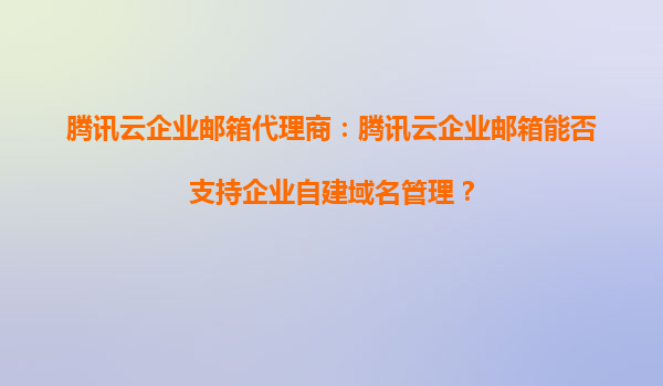 2025-10-14騰訊云企業(yè)郵箱代理商:騰訊云企業(yè)郵箱能否支持企業(yè)自建域名管理? 一、騰訊云企業(yè)郵箱的核心優(yōu)勢 騰訊云企業(yè)郵箱作為國內(nèi)領(lǐng)先的企業(yè)級郵箱服務(wù),依托騰訊強(qiáng)大的技術(shù)實力和生態(tài)資源...