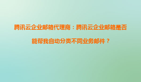 2025-10-10騰訊云企業(yè)郵箱代理商:騰訊云企業(yè)郵箱是否能幫我自動分類不同業(yè)務郵件? 在當今快節(jié)奏的商業(yè)環(huán)境中,企業(yè)每天都要處理大量的電子郵件。如何高效地管理這些郵件,尤其是將不同業(yè)務的郵件自動分類,成為了許多企...