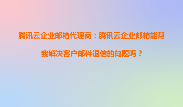 2025-10-09騰訊云企業(yè)郵箱代理商:專業(yè)解決客戶郵件退信難題 郵件退信的常見原因分析 郵件退信是企業(yè)日常通信中常見的問題,通常由域名解析錯(cuò)誤、IP被列入黑名單、收件箱已滿或服務(wù)器拒收等原因?qū)е隆_@些問題不僅影...