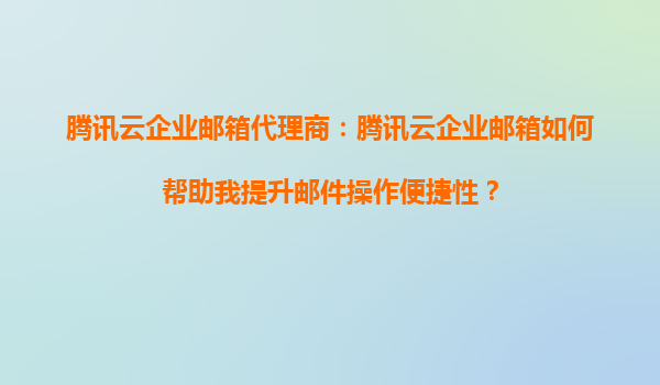 2025-10-06騰訊云企業(yè)郵箱代理商:騰訊云企業(yè)郵箱如何幫助我提升郵件操作便捷性? 一、騰訊云企業(yè)郵箱的核心優(yōu)勢 騰訊云企業(yè)郵箱作為國內(nèi)領(lǐng)先的企業(yè)級郵箱服務,依托騰訊強大的技術(shù)實力和豐富的生態(tài)資源,為...