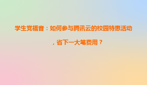2025-11-10學(xué)生黨福音:如何參與騰訊云的校園特惠活動(dòng),省下一大筆費(fèi)用? 一、騰訊云校園特惠活動(dòng)的優(yōu)勢(shì) 騰訊云作為國(guó)內(nèi)領(lǐng)先的云計(jì)算服務(wù)提供商,針對(duì)學(xué)生群體推出了專屬的校園特惠活動(dòng)。這項(xiàng)活動(dòng)不僅價(jià)格優(yōu)惠,還提...